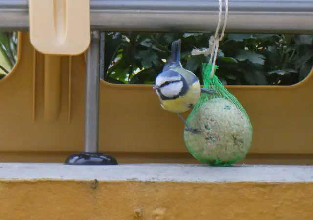 Blaumeise: Eine Blaumeise auf dem Balkon